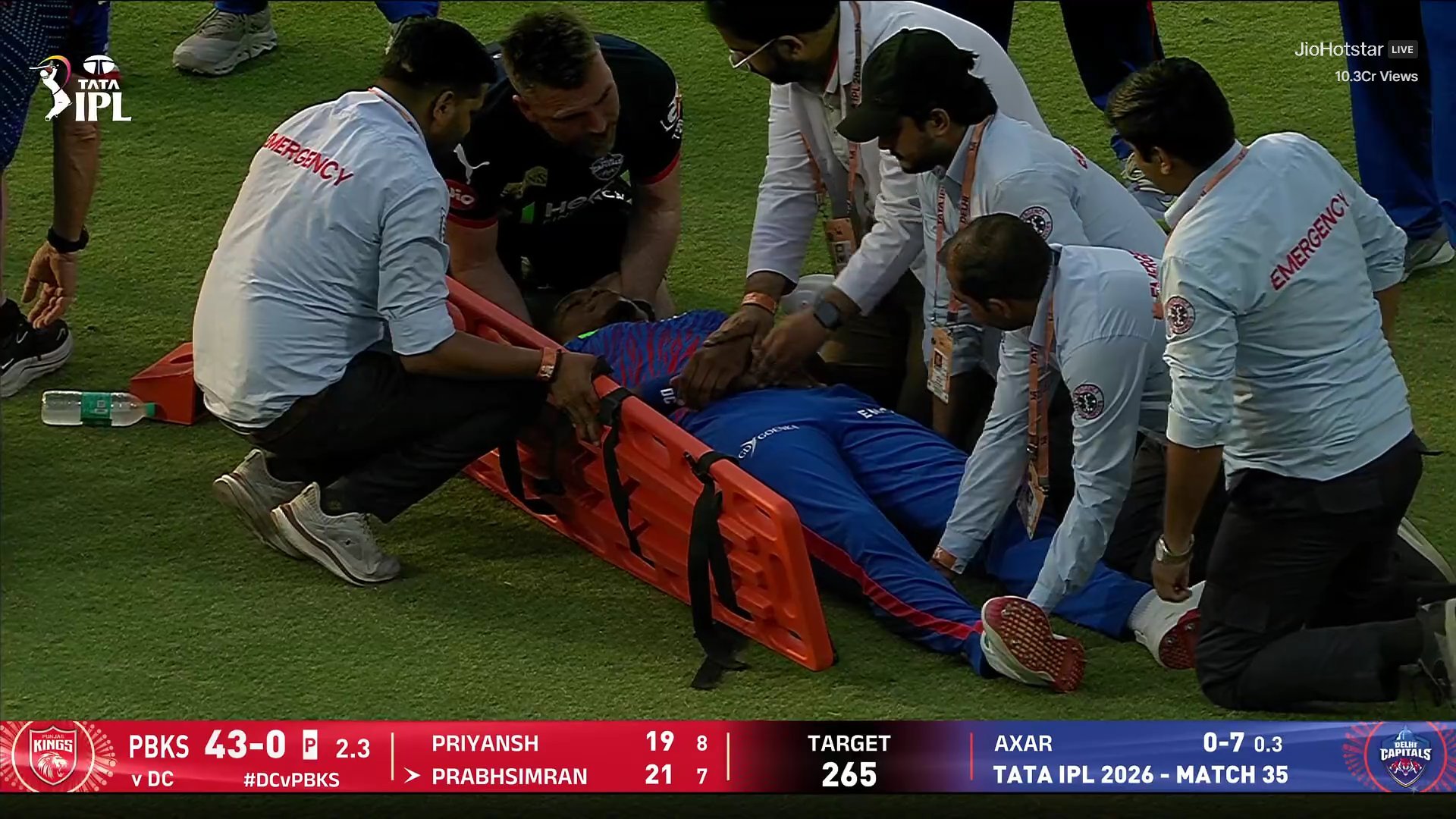 नई दिल्ली। Indian Premier League 2026 के एक मुकाबले के दौरान Delhi Capitals के तेज गेंदबाज Lungi Ngidi को सिर में चोट लगने के बाद मैदान से स्ट्रेचर पर बाहर ले जाना पड़ा।