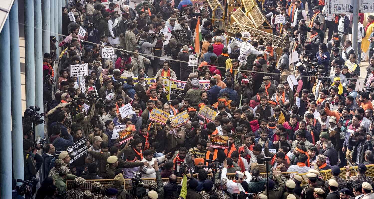 बांग्लादेश में हिंदुओं पर हिंसा के विरोध में उबाल, ढाका उच्चायोग के बाहर VHP-बजरंग दल का प्रदर्शन