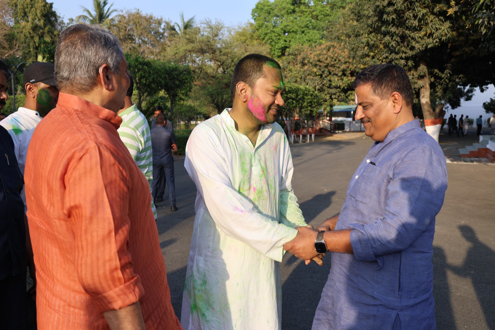 होली के अवसर पर मुख्यमंत्री आवास में आयोजित कार्यक्रम में निशांत कुमार अलग ही अंदाज में नजर आए। वे मुख्यमंत्री नीतीश कुमार के करीबी मंत्री विजय चौधरी और जदयू के वरिष्ठ नेता संजय झा के साथ दिखे। इस दौरान उन्होंने पार्टी कार्यकर्ताओं और नेताओं से मुलाकात की, उन्हें गुलाल लगाया और होली की शुभकामनाएं दीं।