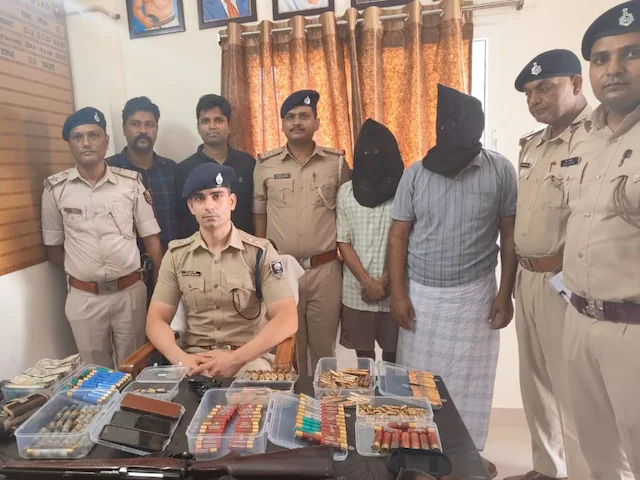 गिरफ्तार बदमाशों की पहचान हरेराम सिंह और विनीत कुमार के रूप में हुई है। तलाशी के दौरान पुलिस ने तीन राइफल, एक रिवॉल्वर, 340 से अधिक जिंदा कारतूस, पांच लाख रुपये नकद, तीन मोबाइल और कई हथियारों के पुर्जे बरामद किए। पुलिस रिकॉर्ड के मुताबिक विनीत पहले भी आर्म्स एक्ट और रंगदारी के मामलों में जेल जा चुका है, जबकि हरेराम पर हत्या तक के संगीन आरोप दर्ज हैं।