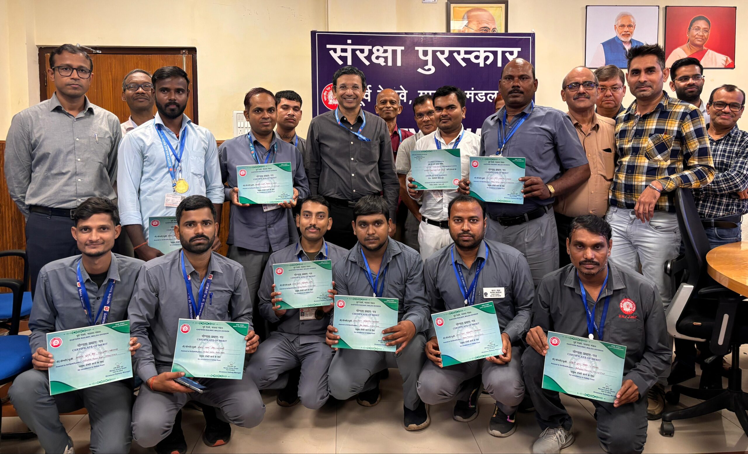 सुरक्षा पुरस्कार समारोह में मालदा के मंडल रेल प्रबंधक (डीआरएम) श्री मनीष कुमार गुप्ता उपस्थित थे,जिन्होंने रेलवे सुरक्षा में उनके अनुकरणीय योगदान के लिए 11 प्रतिष्ठित कर्मचारियों को पुरस्कार प्रदान किया।