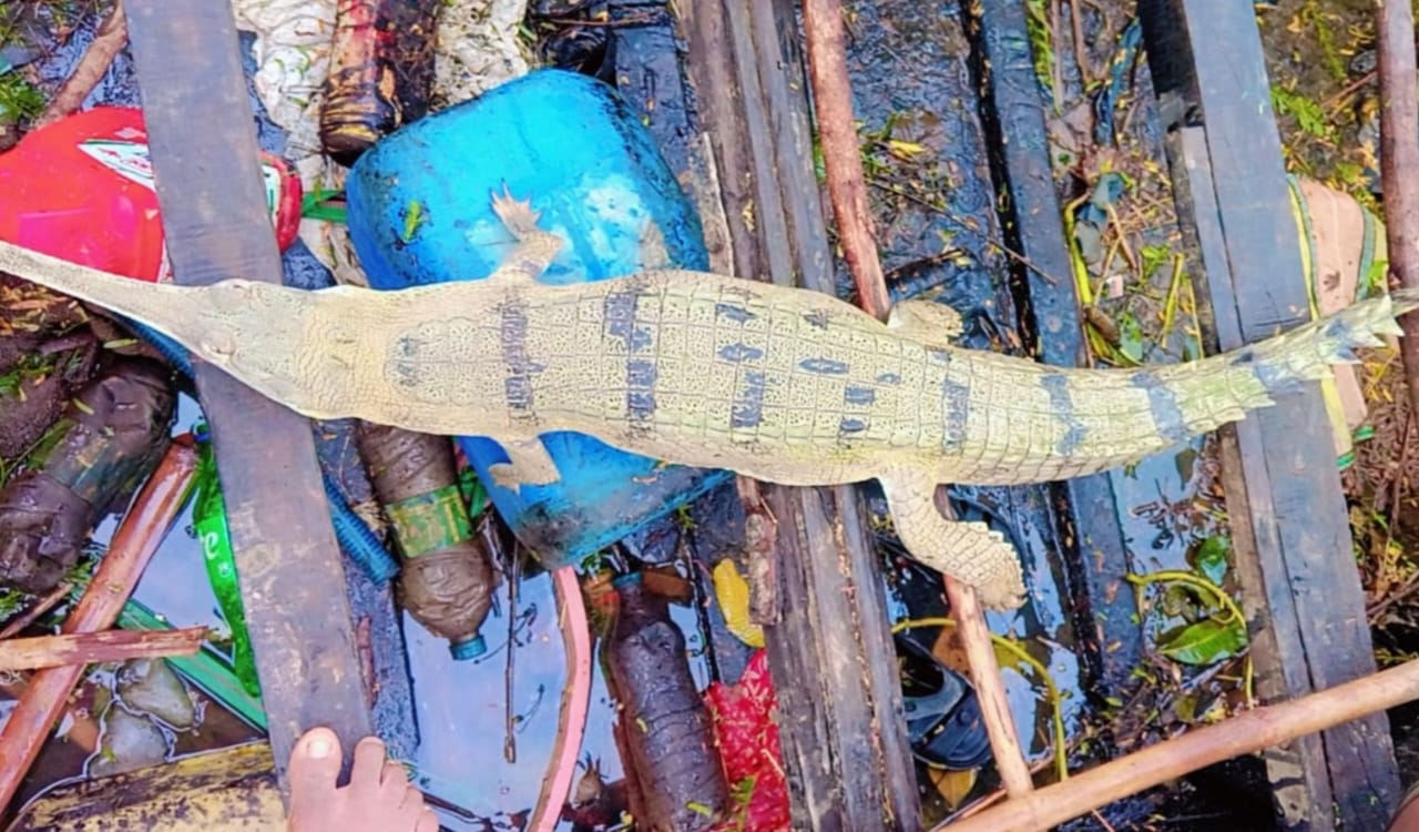 घटना का विवरण: सुजीत कुमार सिंह के घर में बाढ़ का पानी भर चुका था, जब अचानक सोमवार की रात एक घड़ियाल पानी के साथ उनके घर में घुस आया। उस समय घर के अंदर एक बच्चा चौकी पर सो रहा था। घड़ियाल ने बच्चे पर हमला करने की कोशिश की, लेकिन घरवालों ने तुरंत सतर्कता दिखाई और बच्चे को सुरक्षित बाहर निकाल लिया। इसके बाद, घड़ियाल के मुँह को रस्सी से बाँध दिया गया।