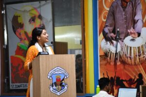कार्यक्रम का संचालन मास कम्युनिकेशन विभाग की सहायक प्राध्यापिका श्रीमती प्रिया मनीष कुमार ने किया। संवाद सत्र में छात्रों ने नेतृत्व, संघर्ष प्रबंधन और करियर विकास से जुड़े सवाल रखे जिनका श्री अर्नाला ने अनुभवों के आधार पर विस्तार से उत्तर दिया।