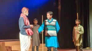 नाटक की कथा कर्ज़ और शोषण से जूझ रहे किसान हल्कू और उसकी पत्नी मुन्नी के संघर्ष को केंद्र में रखती है। लगान और गरीबी के बोझ तले दबा हल्कू कड़ाके की ठंड में खेत की रखवाली को मजबूर होता है। ठंड, भूख और विवशता के बीच उसकी लड़ाई न केवल प्रकृति से है, बल्कि उस व्यवस्था से भी है, जो किसान को अंतहीन पीड़ा में झोंक देती है। मंच पर ‘पूस की रात’ की भयावहता, नीलगायों द्वारा फसल का नष्ट होना और उसके बाद हल्कू के मन में उपजा अजीब-सा सुकून, दर्शकों को गहराई तक छू गया।
