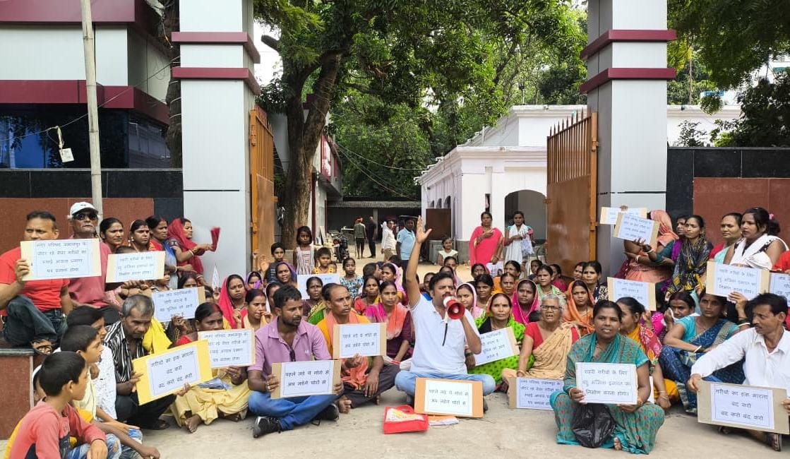 शहरी बेघरों ने जमालपुर नगर परिषद कार्यालय पर किया जोरदार प्रदर्शन