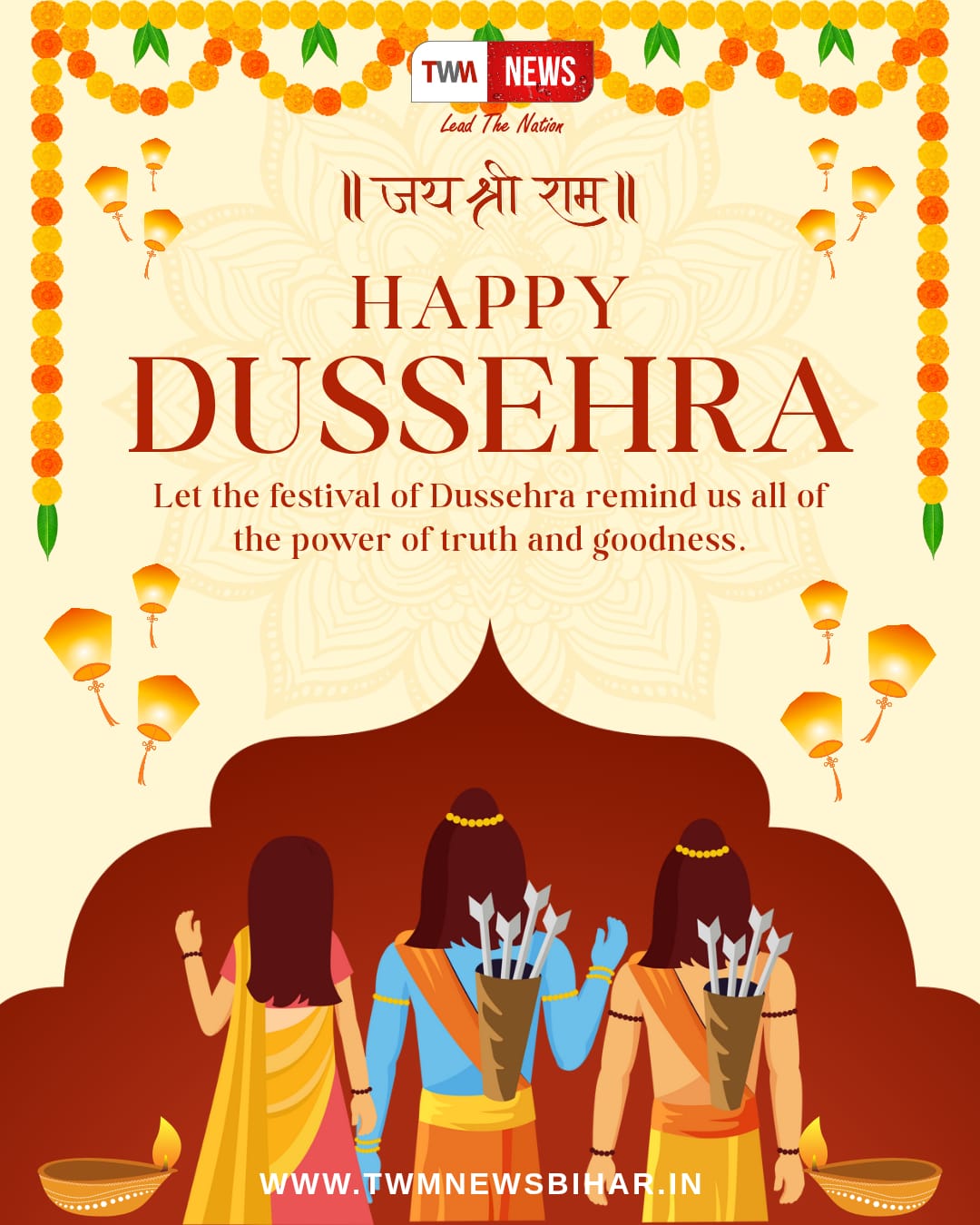 टीडब्ल्यूएम न्यूज़ परिवार की ओर से विजयादशमी की हार्दिक शुभकामनाएँ